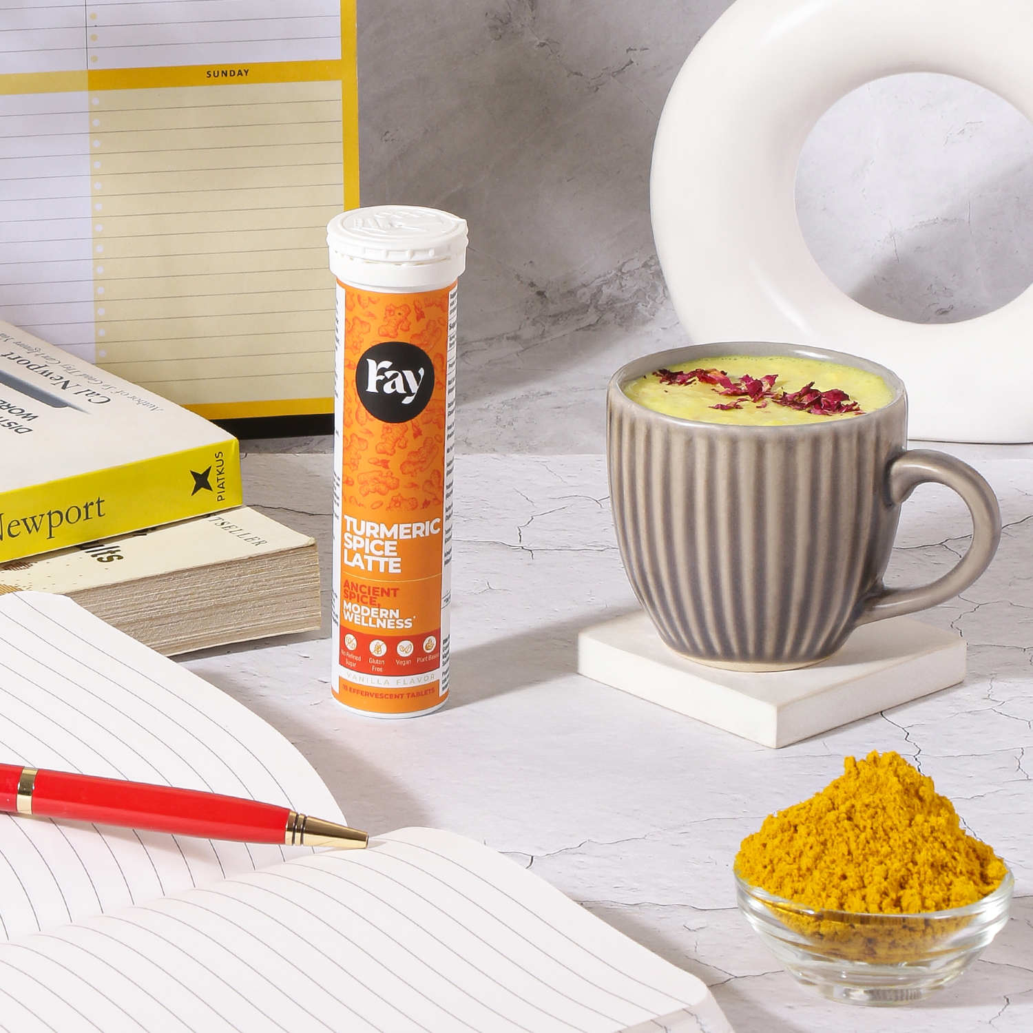 Comfort meets wellness in every sip. Fay Turmeric Spice Latte Effervescent Tablets blend the cozy flavor of golden milk with modern simplicity.